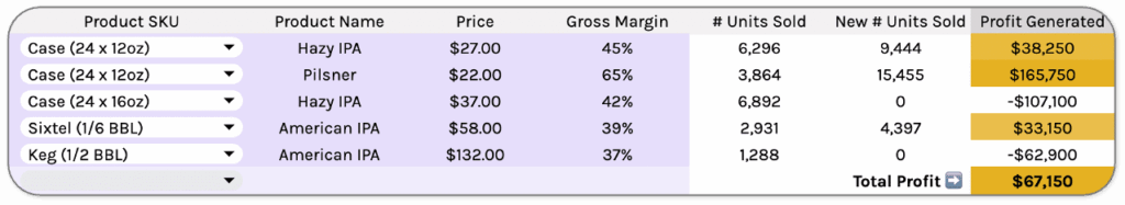As it turns out, prioritizing your portfolio is one of the Distro Profit Plays we run the most. For example, take a brewery with $800k worth of distribution revenue across 6 product SKUs.
